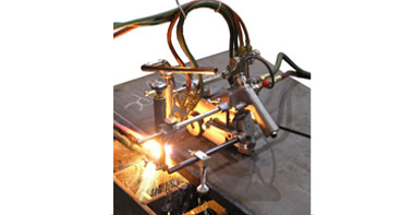 The Edge-Cut™ performs single or double V-Groove beveling on a plate edge without the need for track or rails.